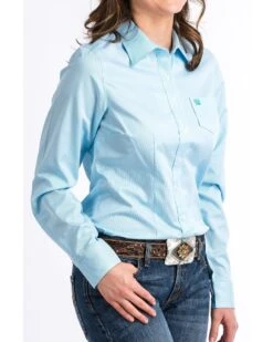 Cinch Women’s Light Blue Stripe Long Sleeve Button Down Western Core Shirt
