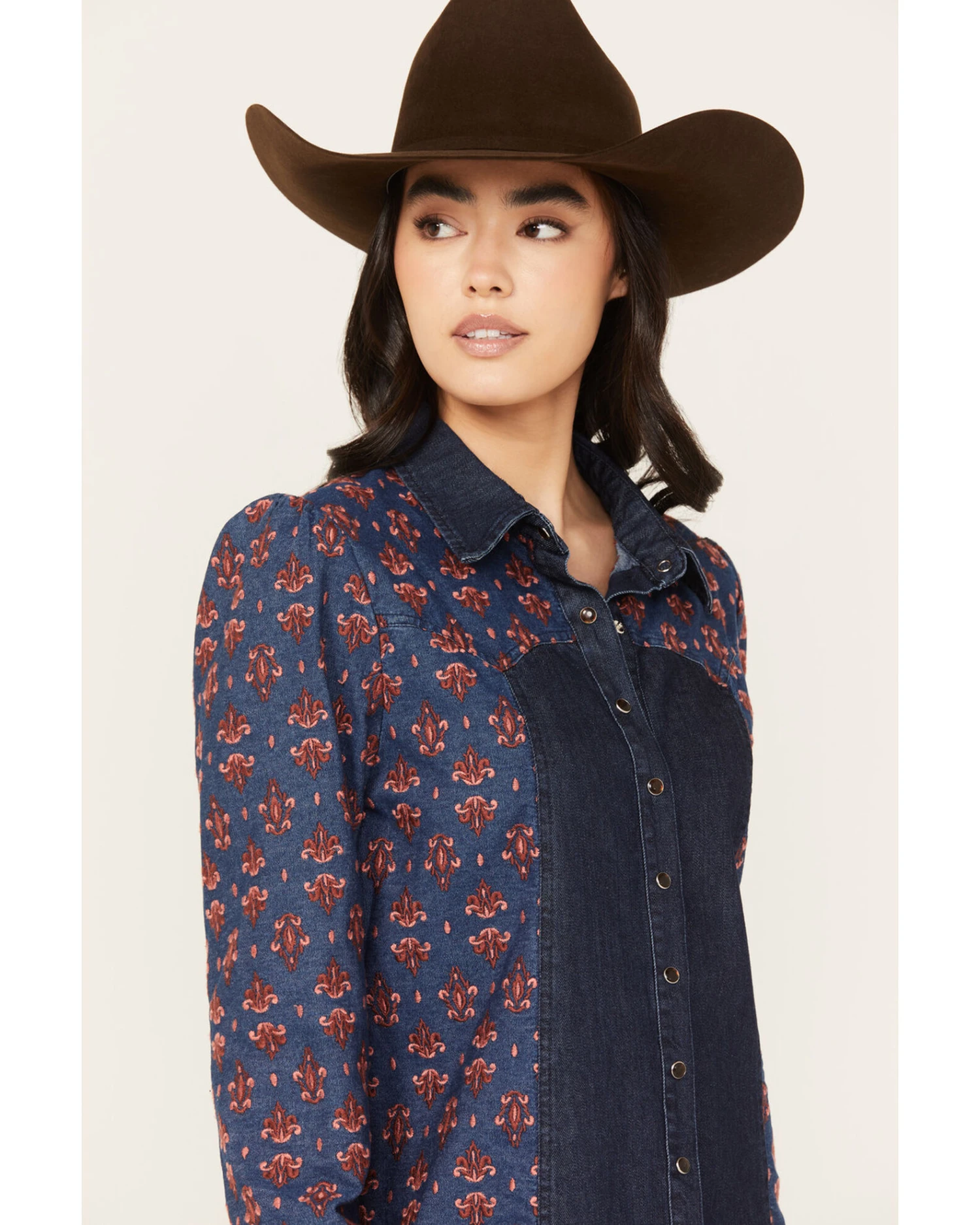 - Snap placket and cuffs