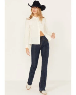 Rock & Roll Denim Women’s Dark Wash Stripe Print High Rise Stretch Bootcut Jeans