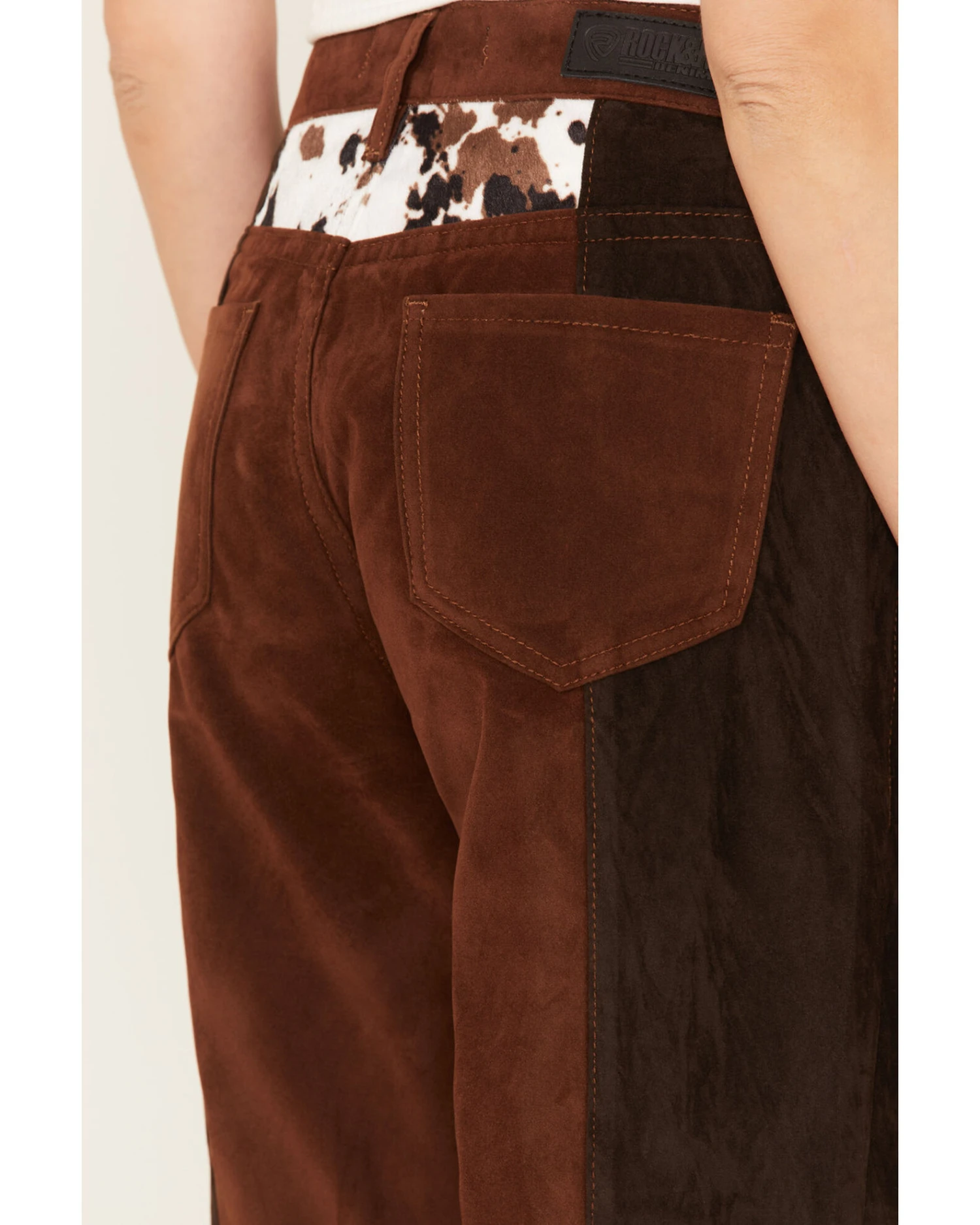 Rock & Roll Denim Women’s Two Tone Color Block Faux Suede High Rise Straight Pants