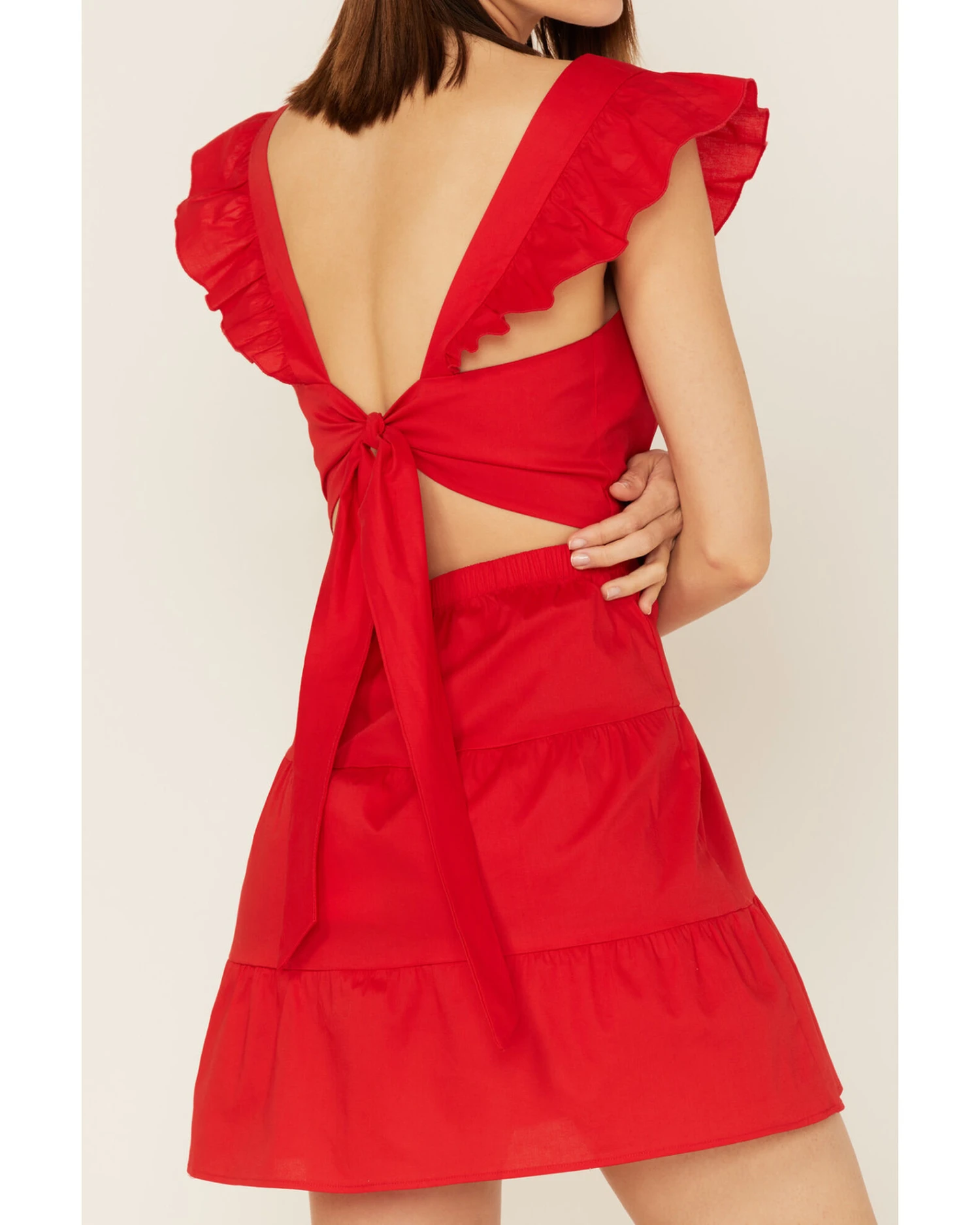 Show Me Your Mumu Women’s Open-Back Bow Tie Tiered Mini Dress