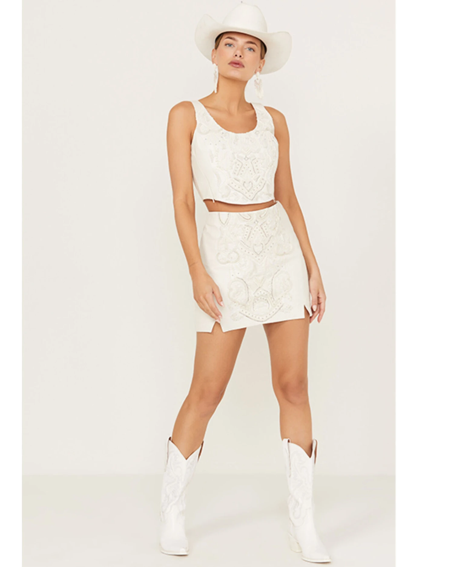 - Studded leatherwork and embroidery on front and back